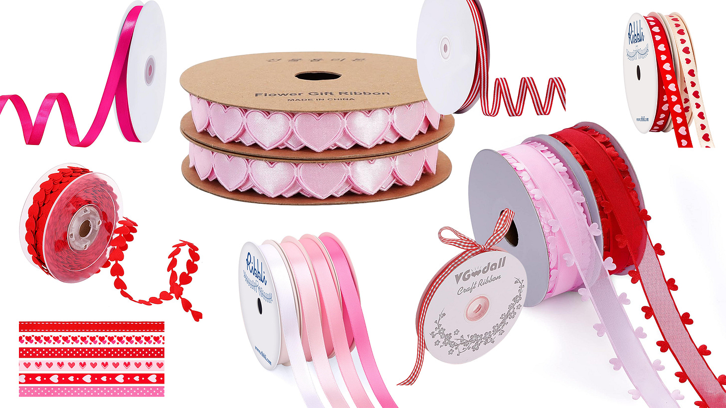 36 inches (per ribbon) × 2,000 hearts = 72,000 inches of ribbon.
