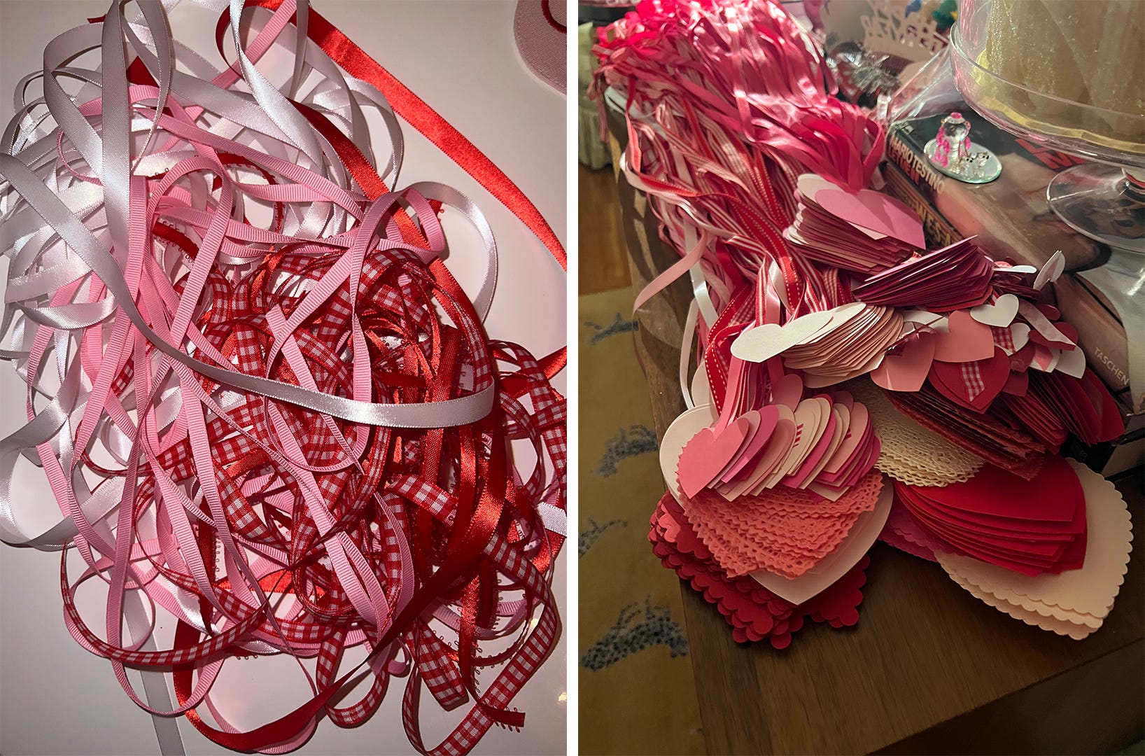 I sourced the hearts from Etsy–a mix of sizes, textures, and shades within my palette. Around December 27th, I ordered about 2,000 hearts. It sounds excessive. It wasn’t.